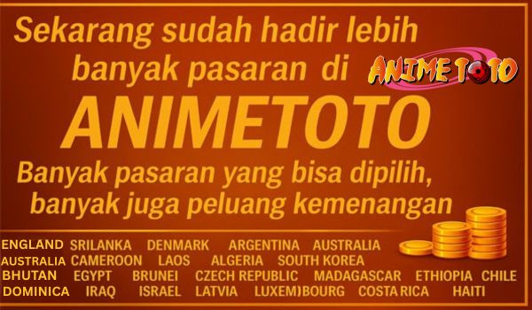 SELAMAT DATANG DI ANIMETOTO, SITUS NON DISKON DAN DISKON, BONUS NEW MEMBER 20%, REFERRAL 1% , DEPOSIT MIN.10RB , WITHDRAW 50RB DAN MINIMAL DEPOSIT VIA PULSA 20.000 DIKENAKAN POTONGAN 20% TERSEDIA 4 PILIHAN MENU BETTINGAN , SELAMAT BERMAIN DAN SALAM JACKPOT^_^